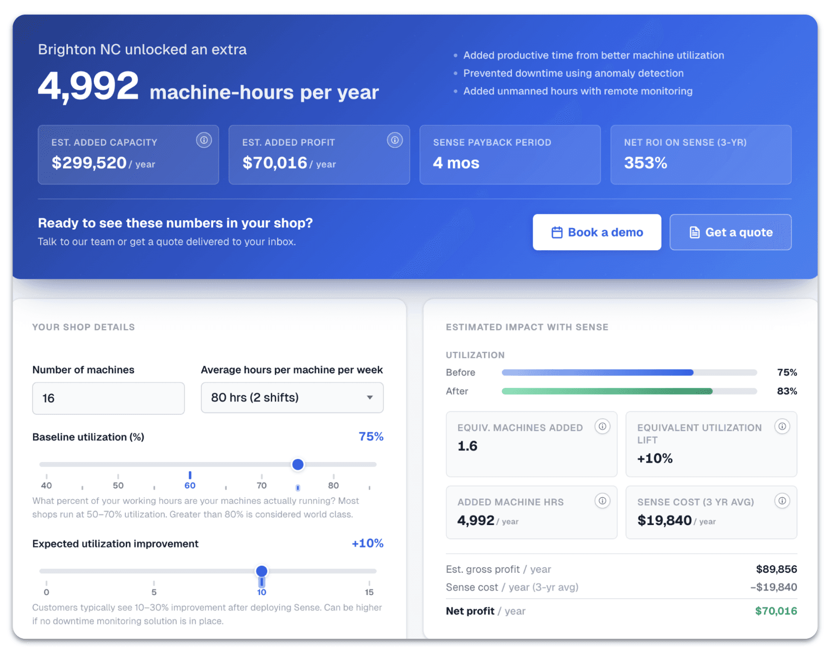 Sense shows where machines are underutilized, where downtime is happening, and how to increase output without buying new equipment.